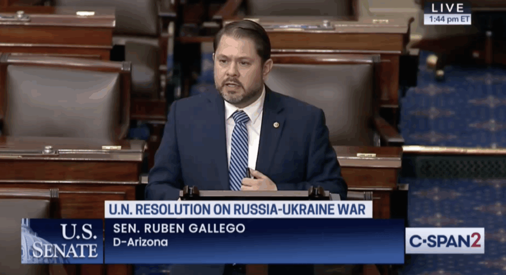 WASHINGTON – Today, Senator Ruben Gallego (D-AZ) gave his first speech on the Senate floor on his resolution condemning the United States’ rejection of a United Nations resolution denouncing Russia’s illegal invasion of Ukraine.